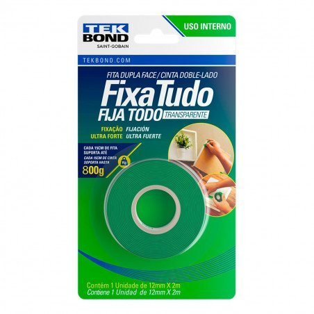 FITA FIXA TUDO INTERNO DUPLA FACE TRANSPARENTE TEK BOND SUPORTA 800GR 12MMX2M BLISTER