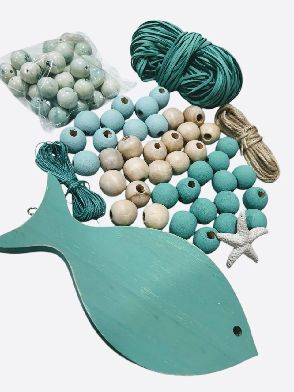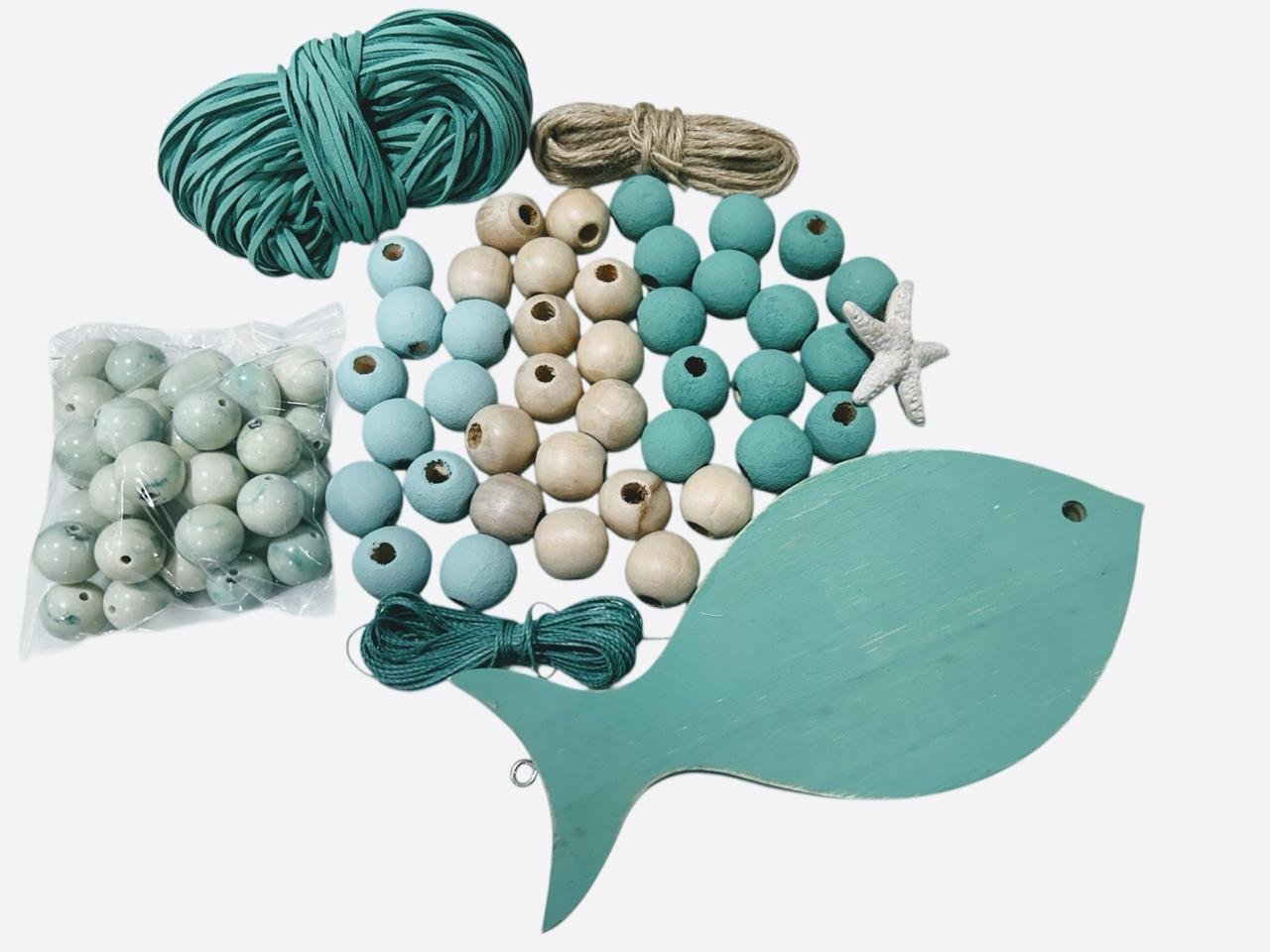 Com este kit, você poderá soltar sua imaginação e criar um colar de mesa totalmente personalizado. As diferentes cores e formatos dos materiais possibilitam combinações únicas, tornando o resultado final uma peça exclusiva que reflete seu estilo pessoal. Além disso, o peixe de pinus pintado e o pingente de estrela do mar proporcionam toques temáticos que remetem a um ambiente praiano e relaxante.