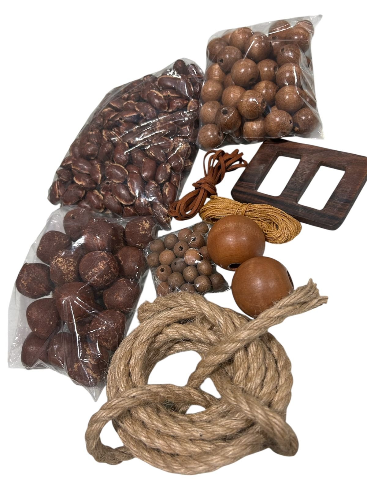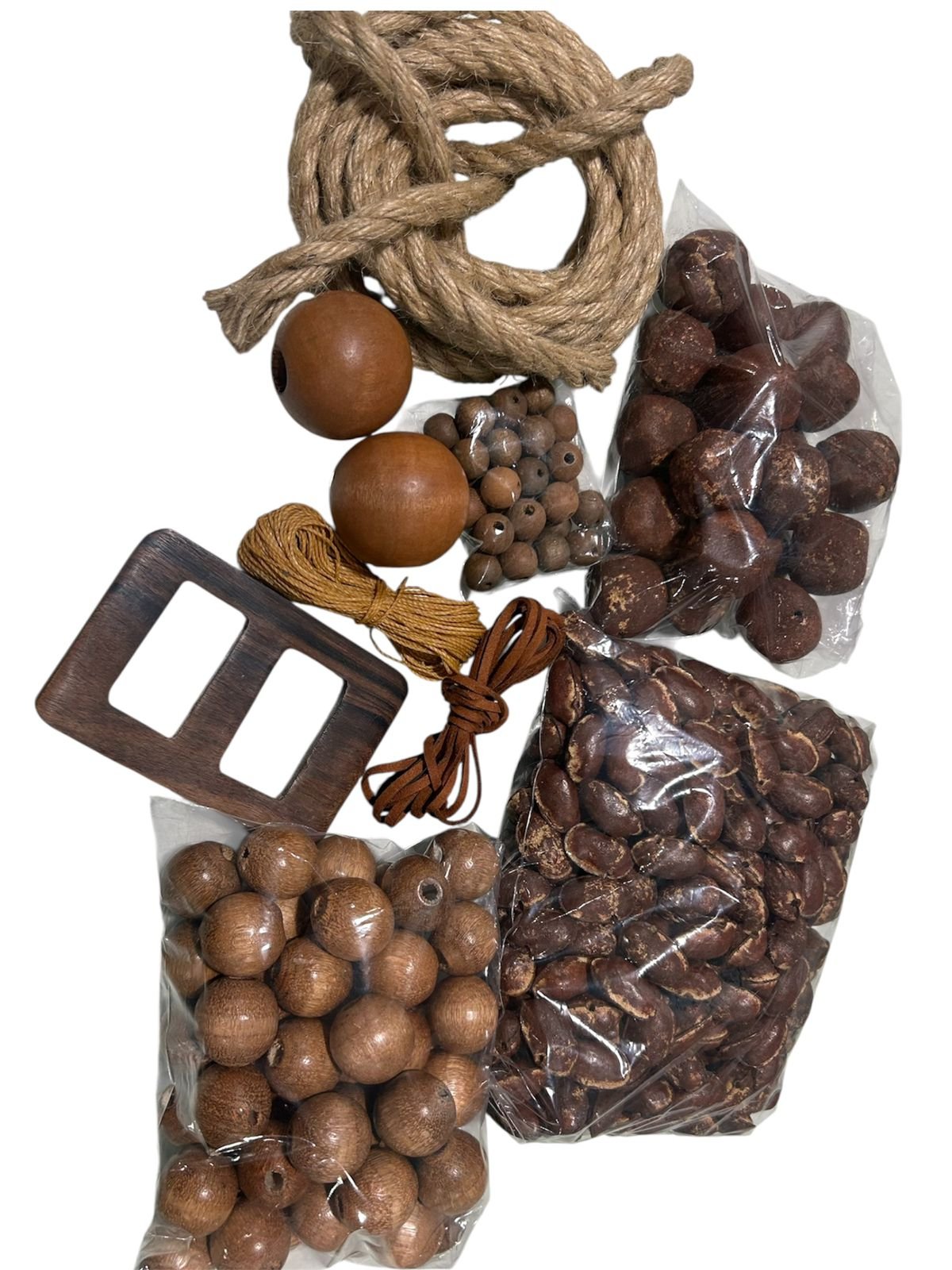 Transforme suas ideias em realidade com o nosso Kit Colar de Mesa. Com uma seleção cuidadosa de 220 sementes e contas de madeira, cada peça possui um furo passante que facilita o manuseio e inspira sua criatividade. Desde pequenos projetos decorativos até colares chamativos de design natural, este kit é perfeito para artesãos e iniciantes.
