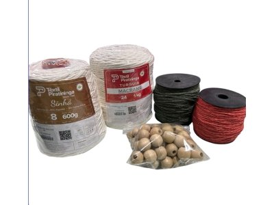 Este kit inclui 375 metros de fio de juta de 3mm, ideal para trabalhos sofisticados e duradouros. Além disso, você receberá 200 metros de barbante em cores variadas, proporcionando liberdade criativa e um toque único ao design de cada peça.
