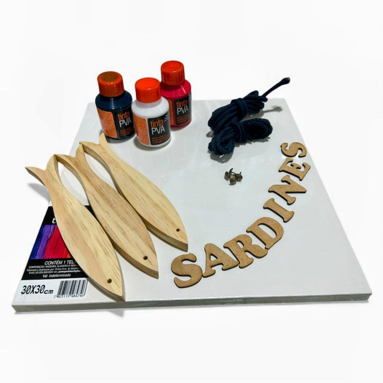 - 1 Palavra “Sardines” em letras de MDF de 3 cm, ideal para personalização.